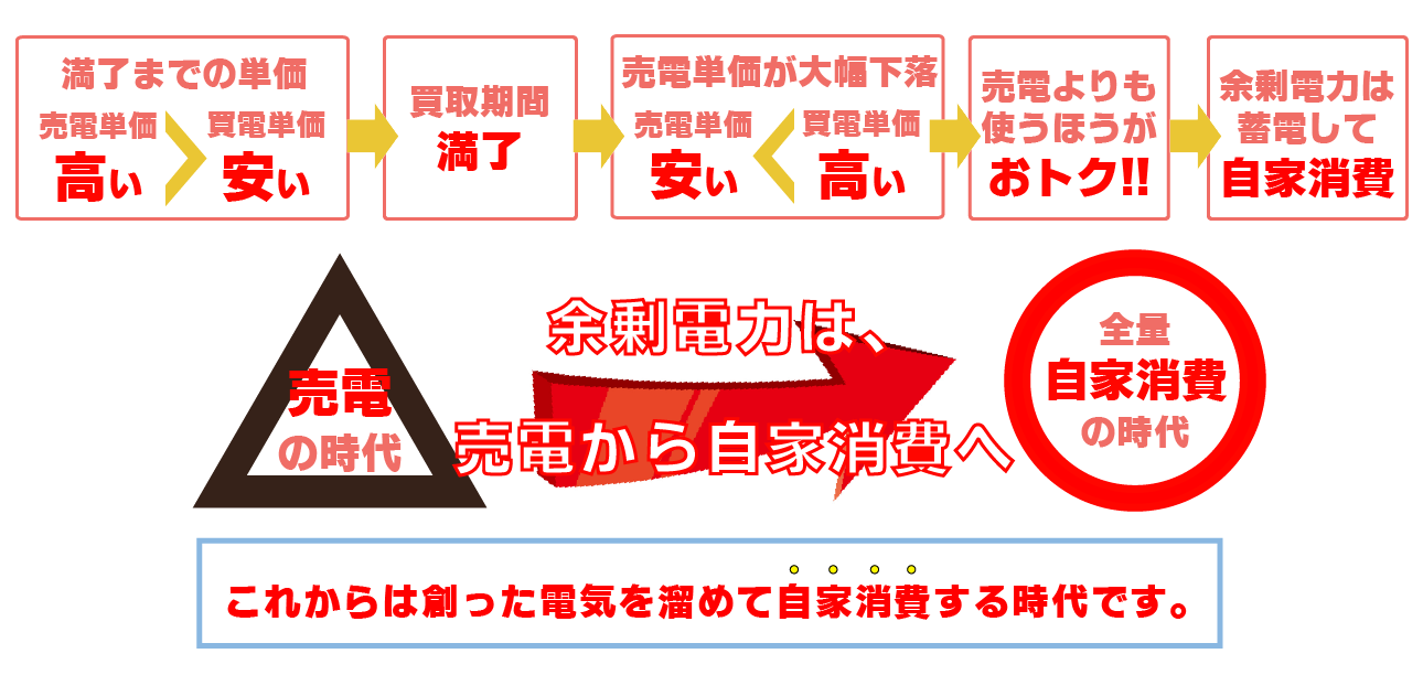 買取期間終了後は、電気を安売りするよりも、自宅で自家消費する方が断然お得です。
