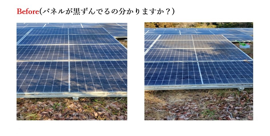 山間部の為、落ち葉等で太陽光パネルが汚れていたので、清掃しピカピカになりました!