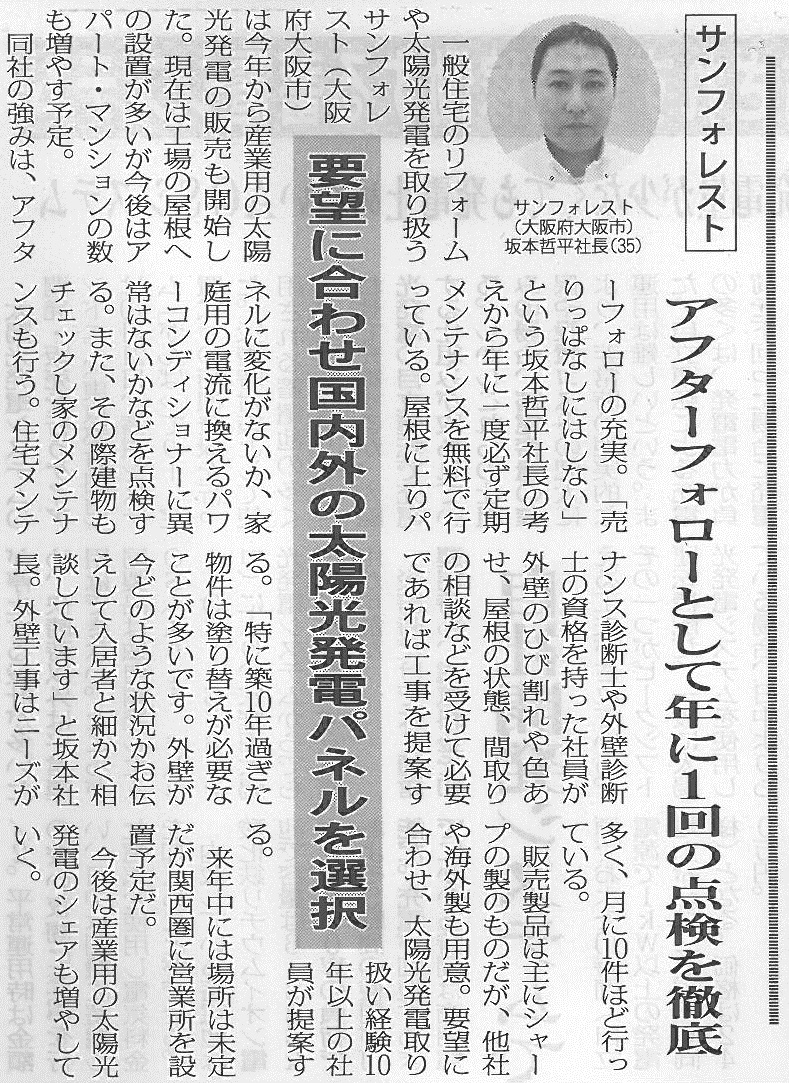 代表の坂本がコメントをしておりまして太陽光発電の内容や