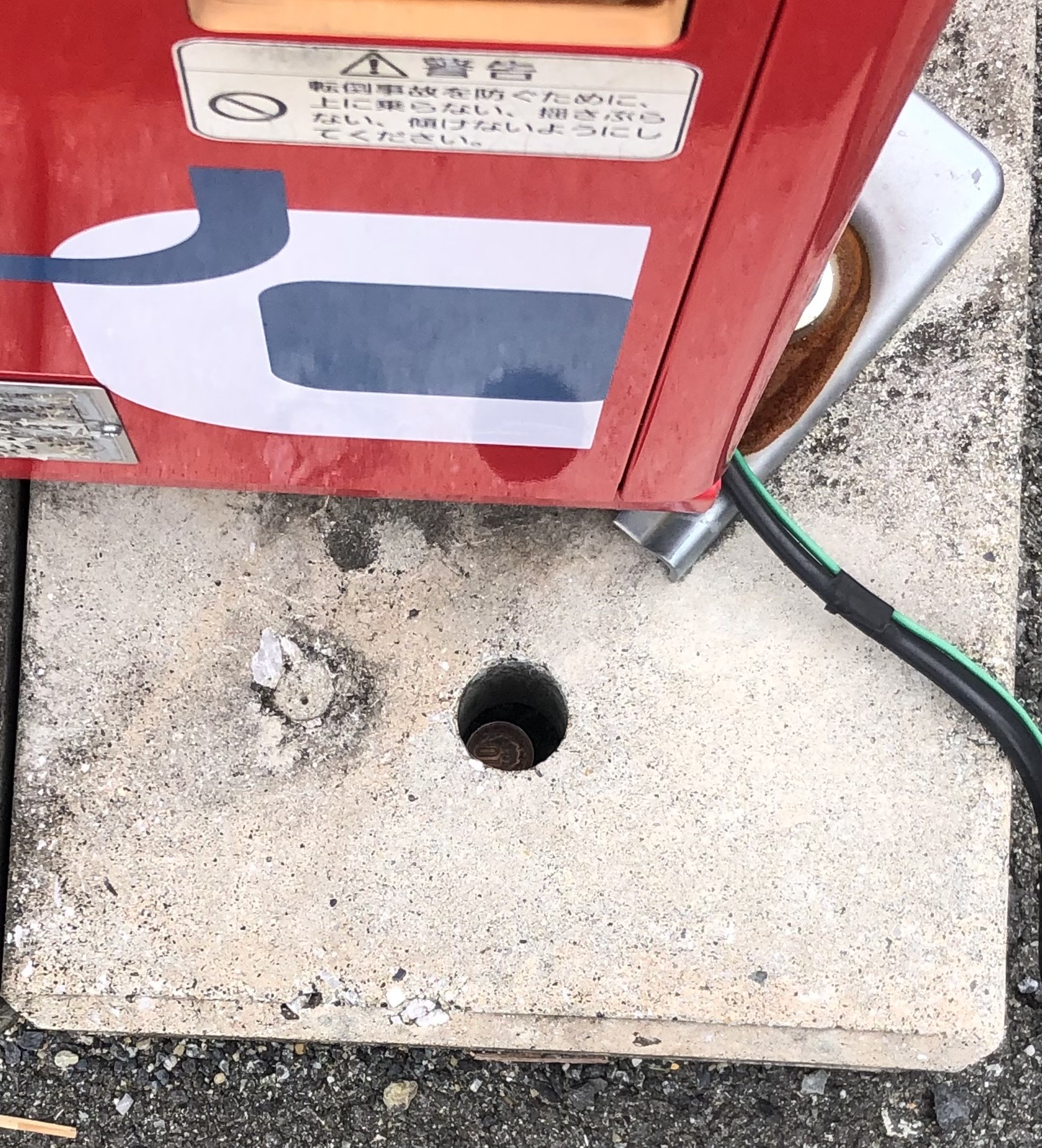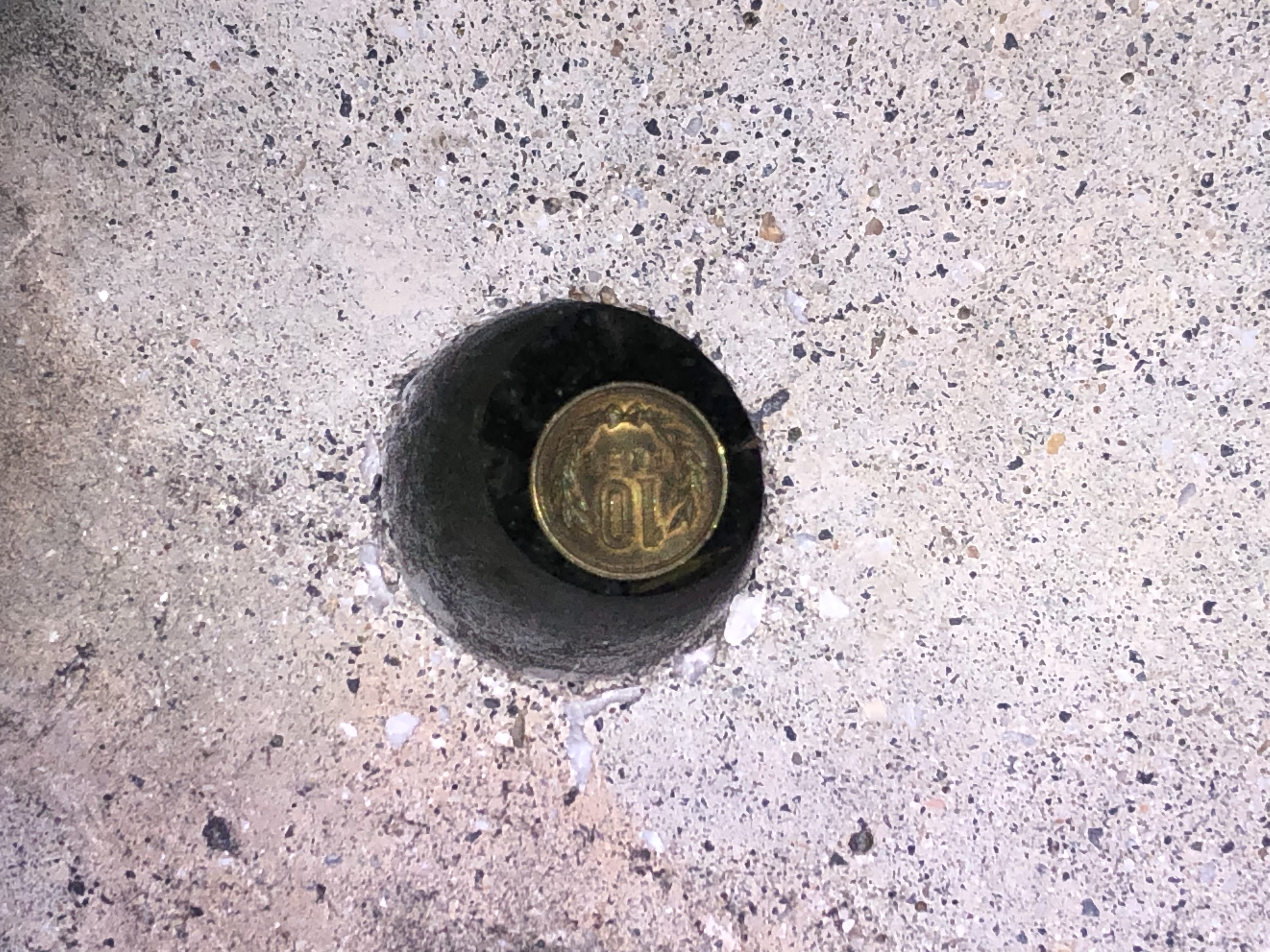 それを拾うべく硬貨の行方を目で追っているとあろう事か、エコベースの貫通穴に落ちてしまいました!