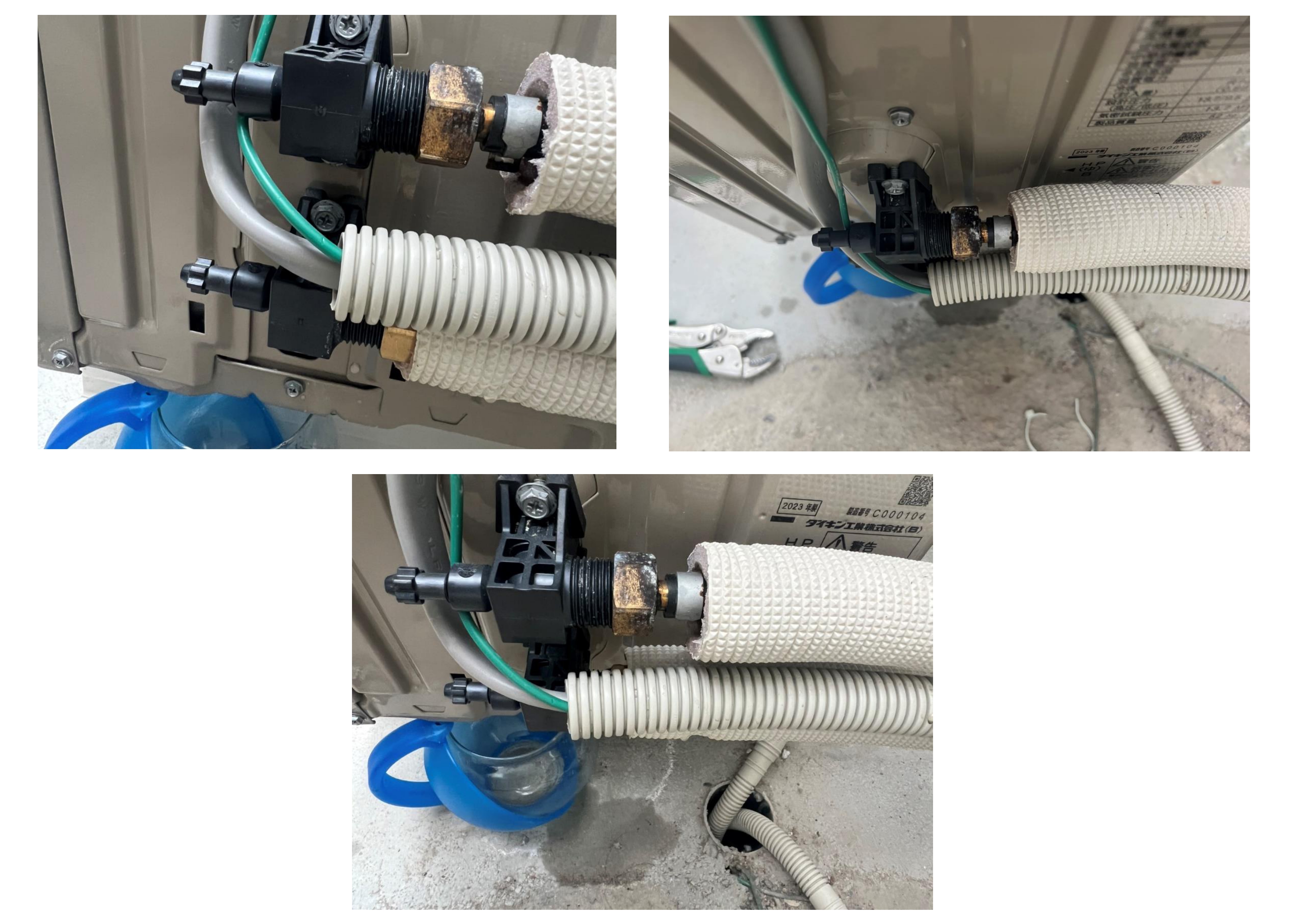 ヒートポンプの繋ぎ目からポタっポタっと、、、