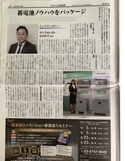 先日、リフォーム産業新聞の記者の方から弊社の代表の坂本が取材を受けました。その内容が8月26日のリフォーム産業新聞に掲載されました。